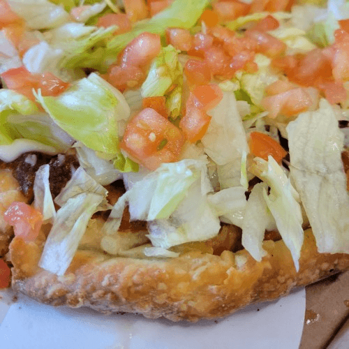 1,000 Island Dressing is the base sauce and then topped with shredded mozzarella cheese. Sauerkraut and chopped Corn Beef finish this for a seasonal delight!